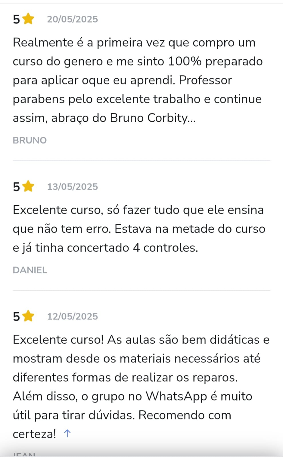 Com quase 30 anos de experiência, o professor Zano Costa vai te ensinar quais ferramentas e materiais comprar, a usar o ferro de solda, a testar e identificar os defeitos, quais aplicativos e jogos usar, vai conhecer todos os controles, saber como abrir e fechar todos, trocar analógicos, potenciômetros, mantas, placa de carregamento, cabo flat, botões, fazer reparo de trilhas nas placas etc.